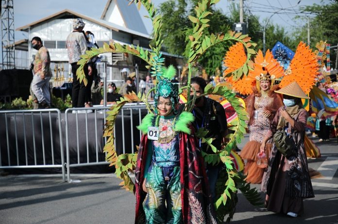 Ribuan warga kota Banjarmasin terlihat memadati Kawasan Jalan RE Martadinata, karena terbius dengan kemegahan sejumlah pakaian peserta yang sangat spekatuler.