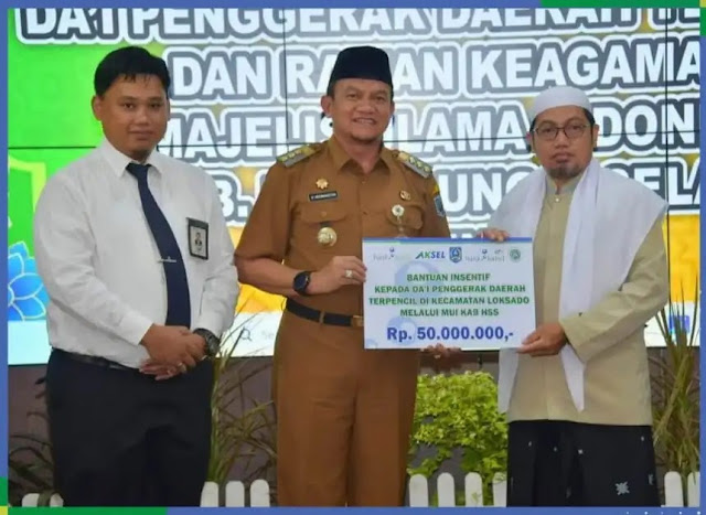 Dalam mendukung program tersebut, Unit Pengumpul Zakat (UPZ) Bank Kalsel memberikan bantuan insentif kepada para da’i yang bertugas di daerah terpencil ini. Bantuan tersebut diserahkan secara simbolis oleh Pj. Bupati HSS Drs. H. Hermansyah, MM kepada perwakilan da’i dari MUI HSS.
