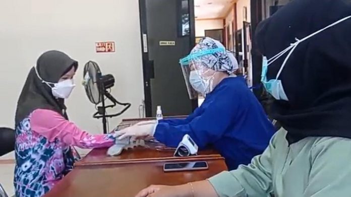 LANGKAR.ID, Kandangan – Kantor Pengadilan Agama (PA) Kandangan, Kabupaten Hulu Sungai Selatan laksanakan vaksinasi tahap II kepada seluruh pegawai, Jumat (10/9/2021). Sebanyak 27 pegawai kemudian bergantian dicek tensi darah, dan menerima suntik vaksin dari petugas kesehatan yang datang khusus ke kantot PA Kandangan.