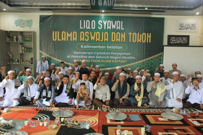 LANGKAR.ID,BANJARMASIN – Liqo Syawal Ulama Aswaja dan Tokoh Kalimantan Selatan mengeluarkan pernyataan sikap, bertemakan “Demokrasi Ciptakan Penjajahan di Palestina dan Seluruh Negeri Muslim. Kembali pada Islam Kafah”.