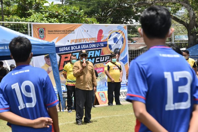 LANGKAR.ID,Banjarmasin – Gubernur Kalimantan Selatan, Sahbirin Noor membuka secara resmi Festival Sepak Bola Usia Dini U-14, Paman Birin Cup 2021 di Lapangan Kayu Tangi, Minggu (10/10/2021).