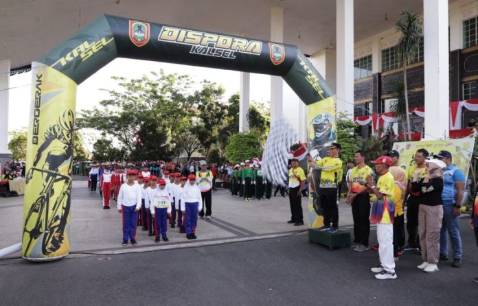 LANGKAR.ID,Banjarbaru – Gubernur Kalimantan Selatan, H. Sahbirin Noor, yang akrab disapa Paman Birin, melalui Kepala Dinas Kepemudaan dan Olahraga Kalimantan Selatan, Hermansyah, secara resmi melepas peserta Lomba Gerak Jalan 5 Km untuk kelompok SD/MI, SMP/MTs, serta SKPD se-Kalimantan Selatan. Acara ini digelar dalam rangka memperingati HUT RI ke-79 dan Hari Jadi (Harjad) Kalimantan Selatan ke-74, bertempat di halaman Kantor Setdaprov Kalsel, Sabtu (10/8/2024).