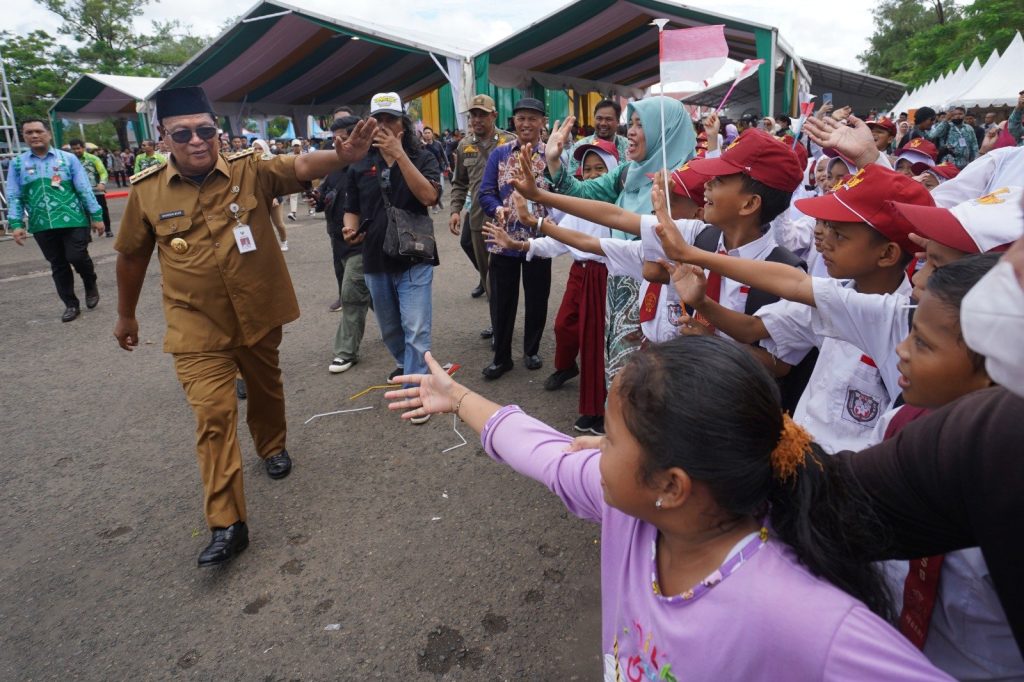 LANGKAR.ID BANJARBARU – Gubernur Kalimantan Selatan (Kalsel) Sahbirin Noor membagikan kebahagiaan kepada pelajar sekolah dasar yang berhadir di peringatan hari jadi kota Banjabaru, Selasa (9/5/2023).