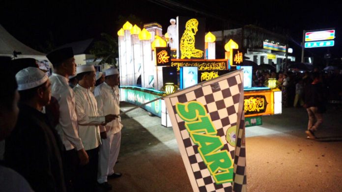 Ratusan masyarakat memadati area sekitar masjid Agung al-Falah untuk melihat jalannya puluhan kendaraan hias bernuansa Islami tersebut.