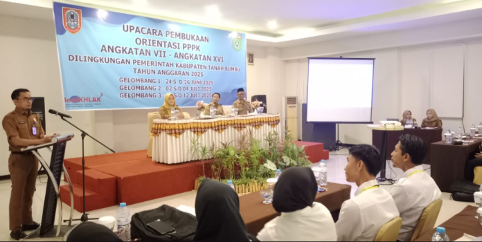 LANGKAR.ID,BATULICIN – Pemerintah Kabupaten Tanah Bumbu (Pemkab Tanbu) resmi membuka kegiatan Orientasi Pegawai Pemerintah dengan Perjanjian Kerja (PPPK) Tahun 2025. Kegiatan ini dilaksanakan secara bertahap dan dibuka pada Selasa (24/6/2025) di Batulicin, oleh Bupati Tanah Bumbu Andi Rudi Latif melalui Kepala BKPSDM Rusdiansyah.