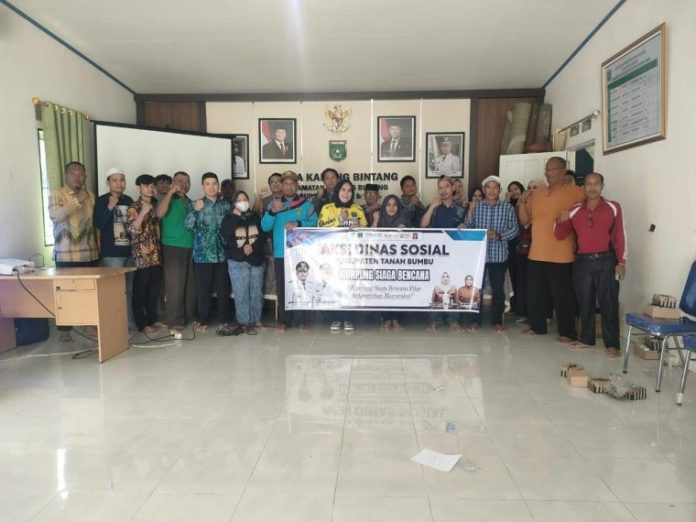 LANGKAR.ID,BATULICIN – Pemerintah Kabupaten Tanah Bumbu melalui Dinas Sosial menggelar Sosialisasi Kampung Siaga Bencana (KSB) bertema “Kampung Siaga Bencana Pilar Ketangguhan Masyarakat”. Kegiatan berlangsung di Kantor Desa Karang Bintang, Kecamatan Karang Bintang, Jumat (14/11/2025).