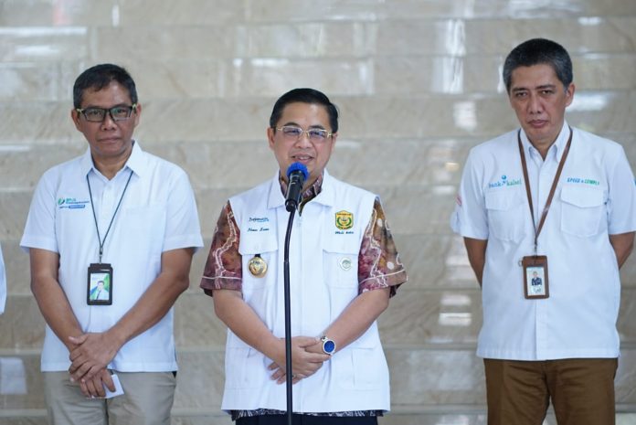 Turut hadir, Asisten I Bidang Pemerintahan dan Kesra, Machli Riyadi, Asisten II Bidang Ekonomi dan Pembangunan, Madyan, Kepala Dinas PUPR Kota Banjarmasin, Suri Sudarmadyah dan Pps. Kepala BPJAMSOSTEK Banjarmasin, Muhammad Anis Fahrurrozi serta PLT Direktur Utama Bank Kalsel, Fachrudin. (Adv/L212)