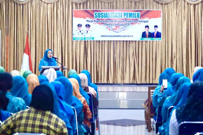LANGKAR.ID BATULICIN – Pemerintah Kabupaten Tanah Bumbu melalui Badan Kesatuan Bangsa (Kesbangpol), melaksanakan kegiatan Sosialisasi Pemilu Partisipatif dengan tema “Peran organisasi perempuan dalam mendukung partisipasi politik pada pemilu 2024”, di Gedung PKK Kapet Tanah Bumbu, Senin (27/11/2023).