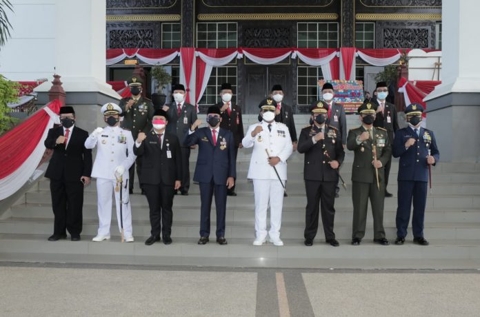 Tidak berbeda dengan daerah lain, proses peringatan HUT ke 76 Kemerdekaan RI di Kalsel juga digelar sederhana dan singkat, namun tetap khidmat.
