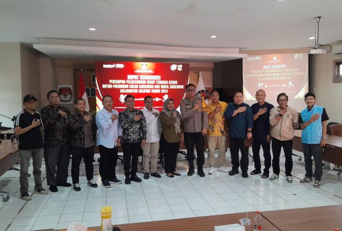 LANGKAR.ID, Banjarmasin – Kepolisian Daerah (Polda) Kalimantan Selatan (Kalsel) turut hadir dalam rapat koordinasi persiapan pelaksanaan debat terakhir Pemilihan Kepala Daerah (Pilkada) Kalsel.