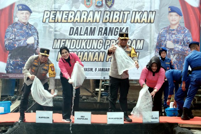 LANGKAR.ID, Banjarmasin – Bentuk nyata Program Asta Cita 2 yang diinisiasi Presiden Prabowo Subianto terkait swasembada pangan, kembali dilakukan Polda Kalsel dengan menebar 25 ribu benih ikan air tawar, di Sungai Martapura, Kelurahan Banua Anyar, Banjarmasin Timur, Kamis (9/1/2025).