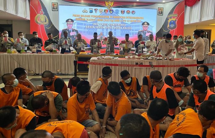 LANGKAR.ID, Banjarmasin – Pengungkapan kasus besar berhasil dilakukan Polda Kalsel selama periode tahun 2023, selama kurun waktu september hingga desember saja Ditresnarkoba Polda Kalsel mampu mengungkap 40 kasus narkotika.