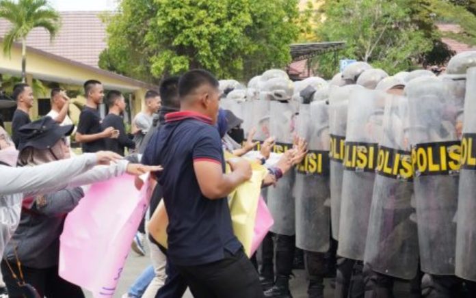 LANGKAR.ID, Batulicin – Kepolisian Resort (Polres) Tanah Bumbu (Tanbu) menggelar simulasi pengamanan Pemilihan Umum (Pemilu) 2024, bertempat di Halaman Mapolres Tanbu, Rabu (30/8/2023).