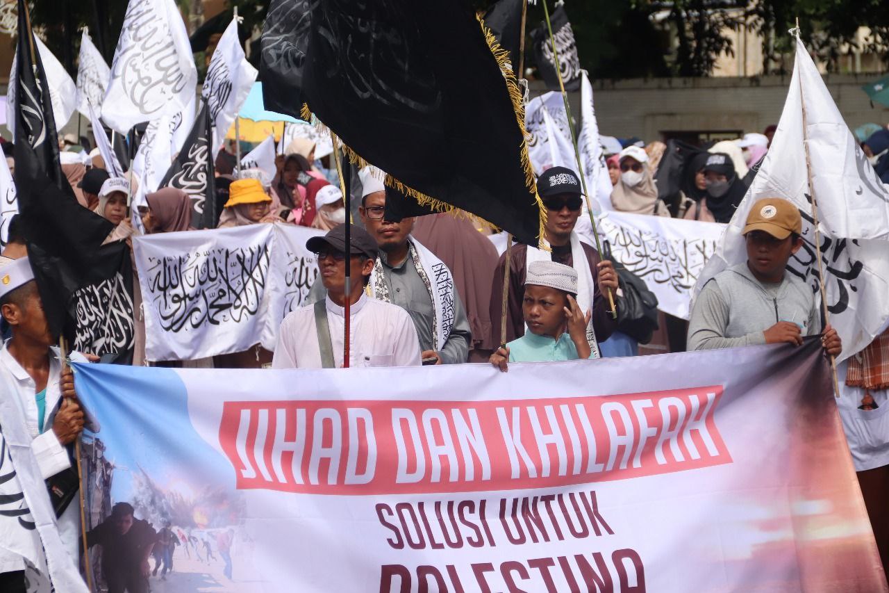 “Maka, apa sifat yang pantas secara syariat terhadap orang yang merampas tanah kita? Usir! Usir dengan apa? Dengan jihad, kirim tentara!” tegas Guru Wahyudi di atas pikap orasi.