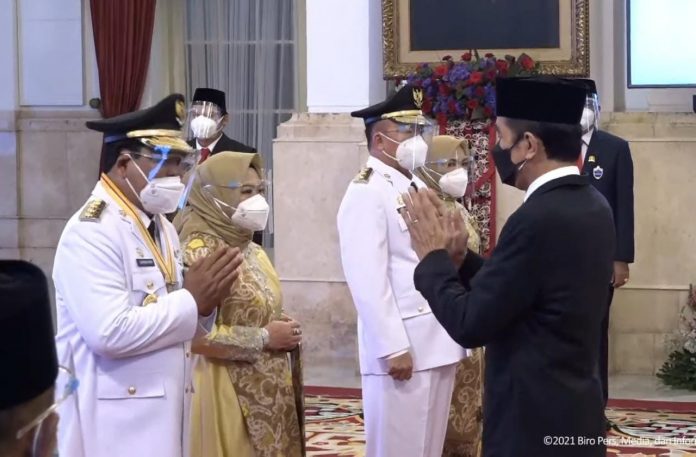 LANGKAR.ID Jakarta – Presiden Republik Indonesia, Joko Widodo melantik Gubernur dan Wakil Gubernur Kalimantan selatan Periode 2021-2024 H.Sahbirin Noor dan H. Muhidin di Istana Merdeka Jakarta, Rabu (25/8/2021).