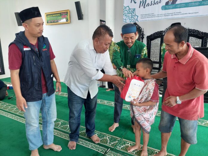 Ratusan anak terlihat antusias mengikuti sunatan massal gratis yang diselenggarakqn TVRI Kalsel berkolaborasi dengan Lazis Assalam Fil Alamin dan Pengurus Masjid Muhammadiyah Al Muhajirin dan Masjid Imadudin Banjarmasin.