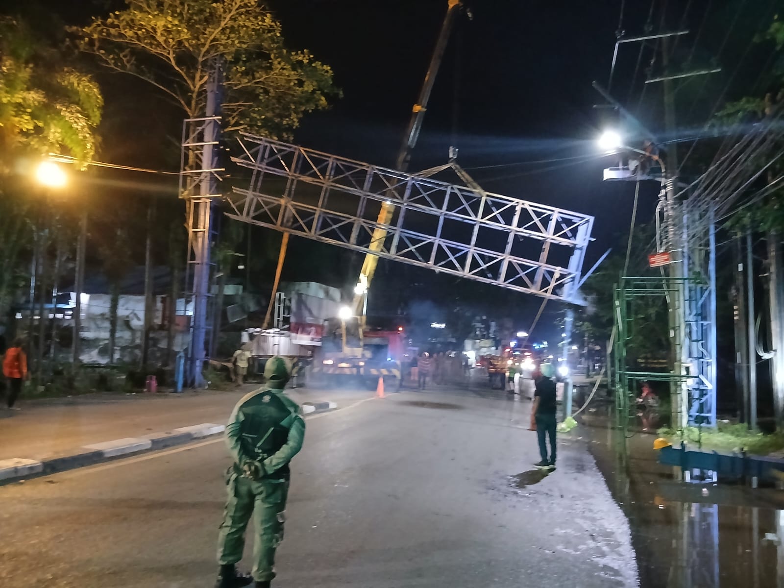 LANGKAR.ID, Banjarmasin – Satuan Polisi Pamong Praja (Satpol PP) Kota Banjarmasin menertibkan sejumlah reklame bando dan billboard yang melanggar aturan pada Jumat (28/11/2025) malam. Total ada 6 objek reklame yang menjadi sasaran penertiban, terdiri dari 4 reklame bando dan 2 reklame billboard.