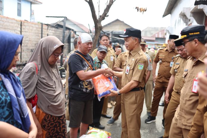 LANGKAR.ID, Batulicin – Sekretaris Daerah (Sekda) Kabupaten Tanah Bumbu H.Ambo Sakka menyerahkan bantuan korban kebakaran Gang PLN Kelurahan Kampung Baru, Selasa (04/02/2025)