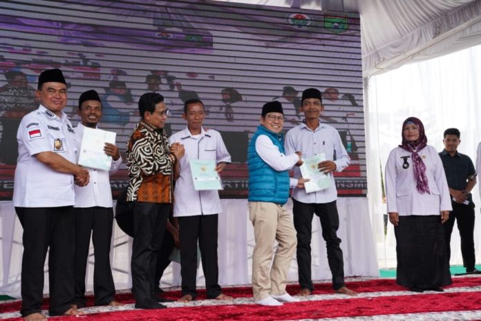 Dalam sambutannya, Muhaimin yang akrab disapa Cak Imin ini mengucapkan terimakasih kepada seluruh pihak yang sudah mensukseskan sertifikasi tanah kepada transmigran.