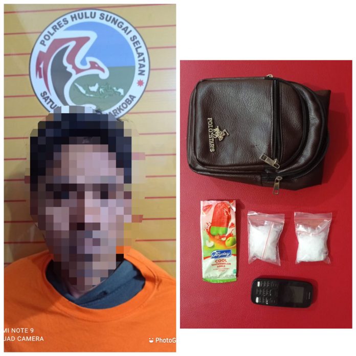 “Petugas Laka Lantas melihat gerak-gerik JMI yang mencurigakan dan kemudian memeriksa tas miliknya, lalu didapati 2 Paket Narkoba Jenis Sabu didalam bungkus Ice Cream”kata Kasubag Humas Polres HSS AKP. Suherman, Rabu (29/09/2021).