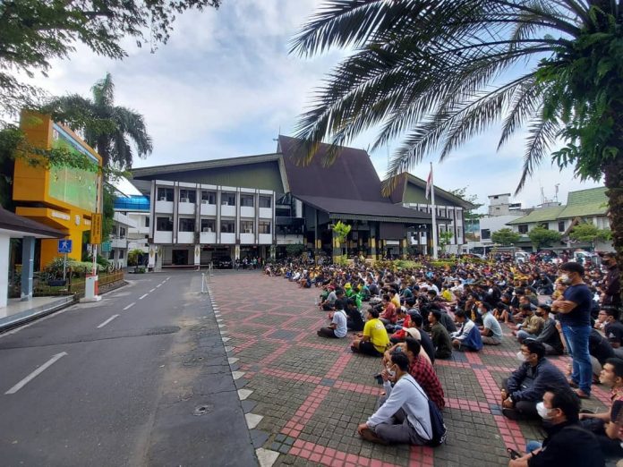 LANGKAR.ID, Banjarmasin – Ratusan supporter PS Barito Putera terlihat memadati halaman kantor Walikota Banjarmasin, untuk menyaksikan laga Barito Putera vs Persib Bandung yang berlangsung di Stadion Kapten I Wayan Dipta, Gianyar, Bali, Kamis (31/3/2022) sore.