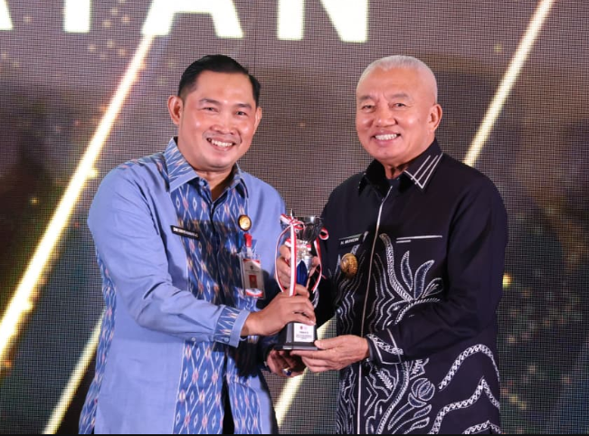 Penghargaan diserahkan Gubernur Kalimantan Selatan, H. Muhidin, kepada Bupati Tanah Bumbu, Andi Rudi Latif, yang diwakili Plt. Staf Ahli Bidang Ekonomi, Keuangan, dan Pembangunan, Dwi Dibyo Raharjo.