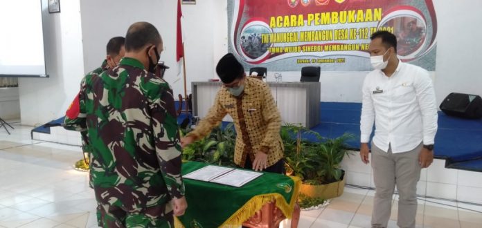 LANGKAR.ID, Barabai- TNI Manunggal Membangun Desa (TMMD) Ke-112 Kodim 1002/Hulu Sungai Tengah (HST) telah resmi dibuka di Pendopo Kantor Bupati HST, Rabu, (15/9/2021) pagi. TMMD Ke-112 yang akan dilaksanakan di Kecamatan Labuan Amas Utara ini digelar selama 30 hari kedepan, mulai 15 September sampai dengan 14 Oktober 2021.