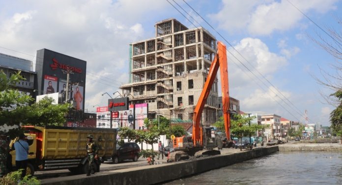 LANGKAR.ID, Banjamasin – Jajaran Korem 101/Antasari melaksanakan pemeliharaan sungai sepanjang 900 meter di Jl Veteran KM 1, Kota Banjarmasin, Senin (04/04/2022).