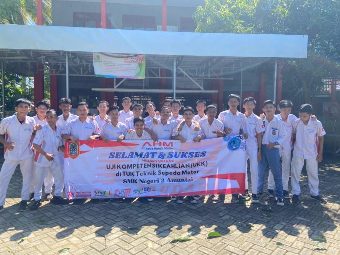 LANGKAR.ID AMUNTAI – SMK Negeri 2 Amuntai kembali menggelar Uji Kompetensi Keahlian (UKK) Teknik Sepeda Motor, yang diadakan setiap tahun di Tempat Uji Kompetensi TSM Astra Honda SMK Negeri 2 Amuntai. UKK ini diikuti oleh 67 siswa kelas XII TSM Astra Honda SMK Negeri 2 Amuntai dan berlangsung selama lima hari.
