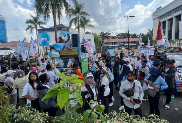 LANGKAR.ID, Banjarmasin – Ratusan buruh yang tergabung dalam Aliansi Pekerja Buruh Banua (PBB), menggelar aksi unjuk rasa di depan kantor Dewan Perwakilan Rakyat Daerah (DPRD) Kalimantan Selatan (Kalsel), di Jalan Lambung Mangkurat, Rabu (15/11/2023).