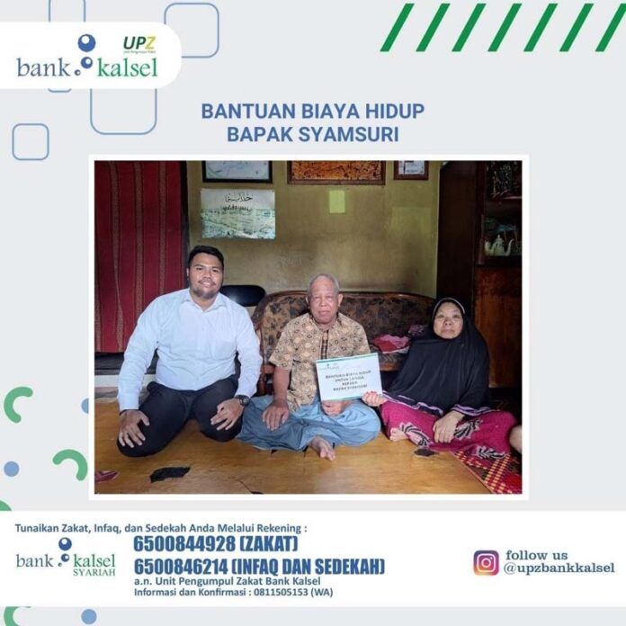 Berdasarkan hal tersebut, sebagai bentuk kepedulian terhadap keluarga pra-sejahtera UPZ Bank Kalsel memberikan bantuan biaya hidup bulanan kepada Bapak Syamsuri.