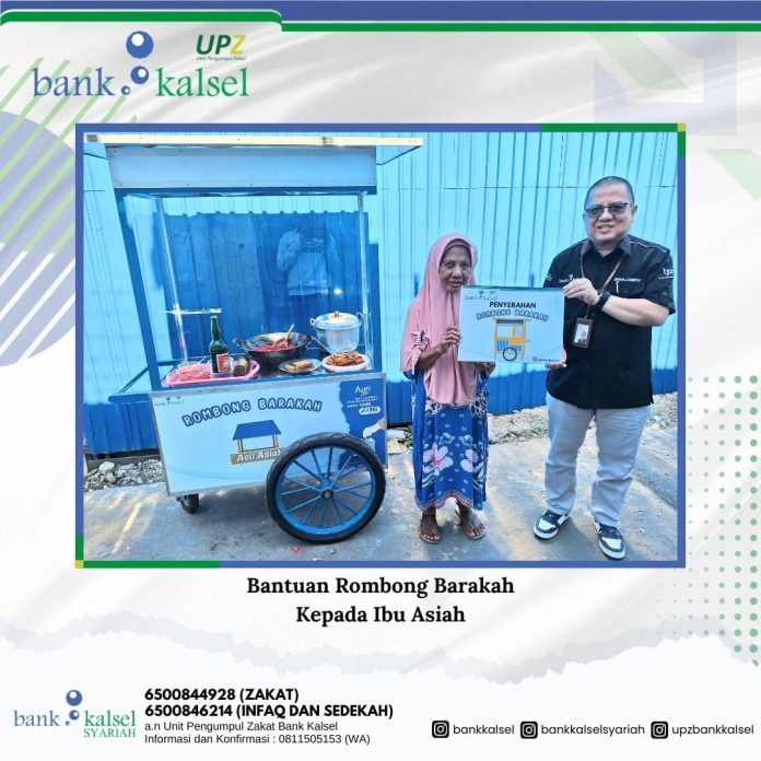 LANGKAR.ID,BANJARMASIN – Dalam upaya meningkatkan kesejahteraan sosial dan ekonomi, Unit Pengumpul Zakat (UPZ) Bank Kalsel memberikan bantuan rombong barakah kepada Ibu Asiah, seorang lansia dhuafa yang tinggal sendiri di Jalan Pekapuran A, RT 12, Kelurahan Sungai Baru, Kecamatan Banjarmasin Tengah.