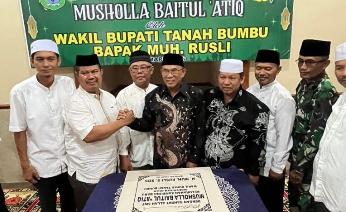 LANGKAR.ID, Batulicin – Wakil Bupati Tanah Bumbu, HM Rusli didampingi oleh staf khusus Bupati, Ustadz H Hamzah meresmikan Mushola Baitul Atiq di Kelurahan Kampung Baru, Kecamatan Simpang Empat, Kamis (23/03/2023).