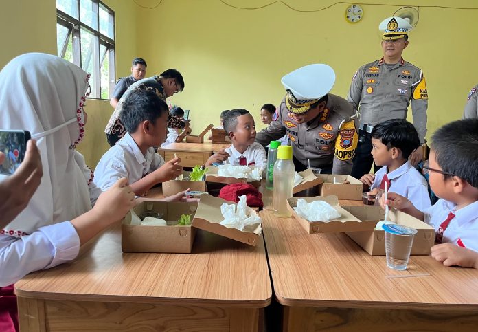 Direktur Lalu Lintas Polda Kalsel, Kombes Pol Fahri Anggia Natua Siregar hadir dengan membawa paket MBG untuk 161 siswa-siswi dari kelas 1 hingga 6.
