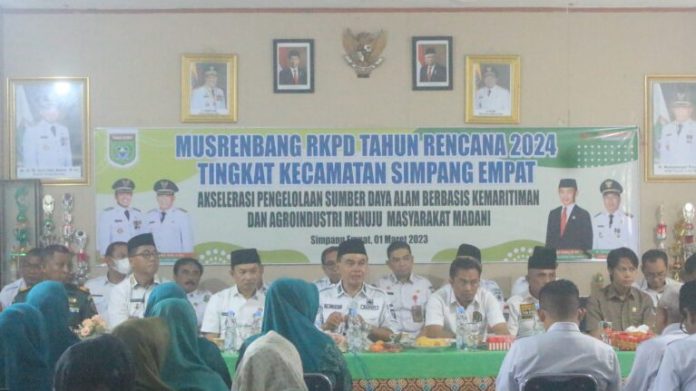 LANGKAR.ID, Batulicin – Kecamatan Simpang Empat menyelenggarakan Musyawarah Perencanaan dan Pembangunan (Musrenbang) Rencana Kerja Pemerintah Daerah (RKPD) Tahun Rencana 2024, bertempat di Aula Kantor Camat Simpang Empat, Rabu, (1/3/2023).