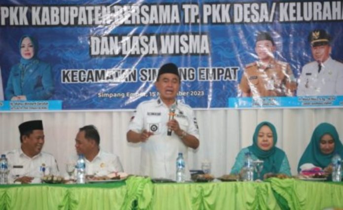 Rakor TP PKK bertempat di Gedung Olah Raga Desa Gunung Besar Kecamatan Simpang Empat, Rabu (15/11/2023).
